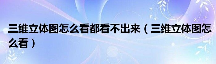 关于三维立体图怎么看都看不出来,三维立体图怎么看这个很多人还不知道,今天菲菲来为大家解答以上的问题,现在让我们一起来看看吧!