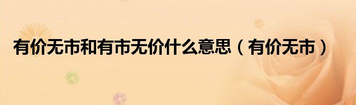 关于有价无市和有市无价什么意思,有价无市这个很多人还不知道,今天菲菲来为大家解答以上的问题,现在让我们一起来看看吧!