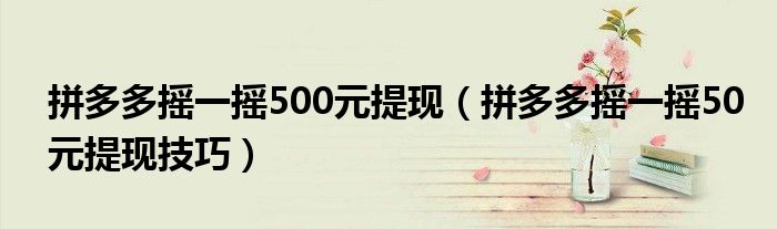 大家好,来宝来为大家解答以下问题,拼多多摇一摇500元提现,拼多多摇一摇50元提现技巧很多人还不知道,今天让我们一起来看看吧!