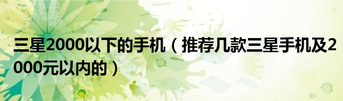 大家好,小常来为大家解答以上问题。三星2000以下的手机,推荐几款三星手机及2000元以内的很多人还不知道,现在让我们一起来看看吧!