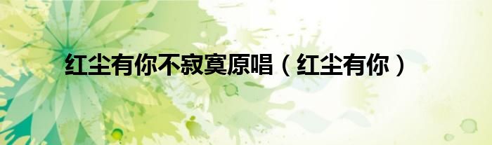 关于红尘有你不寂寞原唱,红尘有你这个很多人还不知道,今天菲菲来为大家解答以上的问题,现在让我们一起来看看吧!
