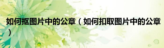 关于如何抠图片中的公章,如何扣取图片中的公章这个很多人还不知道,今天菲菲来为大家解答以上的问题,现在让我们一起来看看吧!
