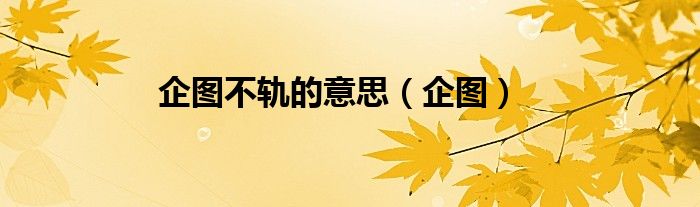 关于企图不轨的意思,企图这个很多人还不知道,今天菲菲来为大家解答以上的问题,现在让我们一起来看看吧!