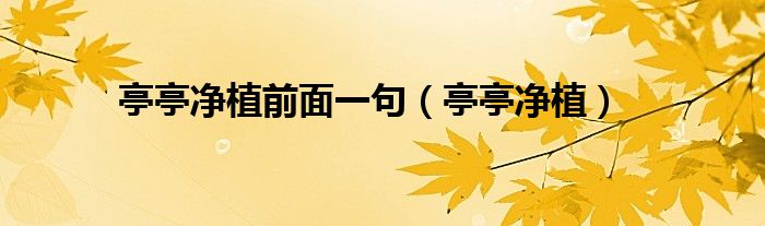 关于亭亭净植前面一句,亭亭净植这个很多人还不知道,今天菲菲来为大家解答以上的问题,现在让我们一起来看看吧!