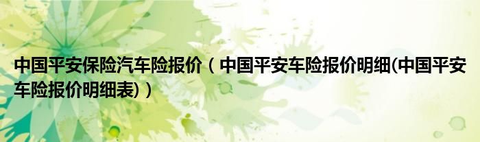 大家好,小常来为大家解答以上问题。中国平安保险汽车险报价,中国平安车险报价明细(中国平安车险报价明细表)很多人还不知道,现在让我们一起来看看吧!
