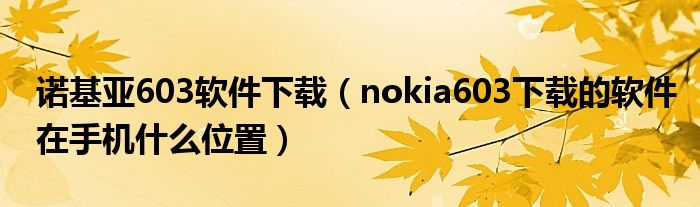 2,nokia603下载的软件在手机什么位置:看你用的什么浏览器下载的例如UC,那么下载的文件就在UCDOWNLOAD(S)里面,如果是用自带浏览器下载的,就在download文件夹里。