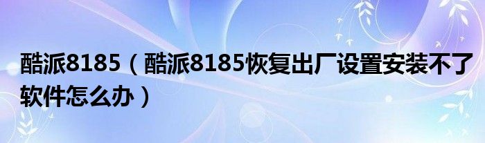 大家好,小常来为大家解答以上问题。酷派8185,酷派8185恢复出厂设置安装不了软件怎么办很多人还不知道,现在让我们一起来看看吧!