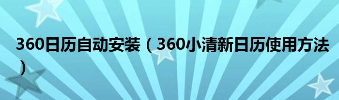 大家好,今天小悦来为大家解答以上问题。360日历自动安装,360小清新日历使用方法很多人还不知道,现在让我们一起来看看吧!