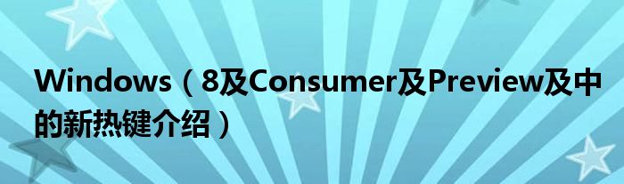 大家好,今天小悦来为大家解答以上问题。Windows,8及Consumer及Preview及中的新热键介绍很多人还不知道,现在让我们一起来看看吧!