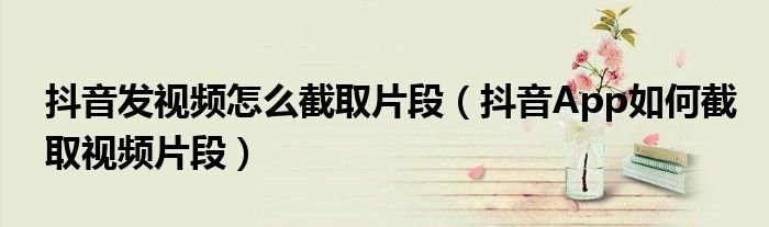 大家好,今天小悦来为大家解答以上问题。抖音发视频怎么截取片段,抖音App如何截取视频片段很多人还不知道,现在让我们一起来看看吧!