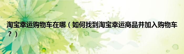 以上就是如何找到淘宝幸运商品并加入购物车的方法。