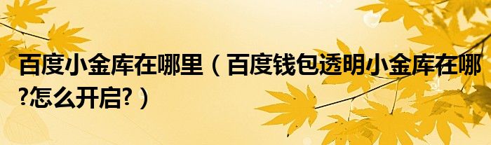 大家好,今天小悦来为大家解答以上问题。百度小金库在哪里,百度钱包透明小金库在哪?怎么开启?很多人还不知道,现在让我们一起来看看吧!