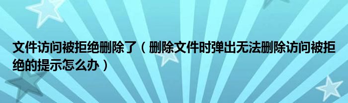 大家好,今天小悦来为大家解答以上问题。文件访问被拒绝删除了,删除文件时弹出无法删除访问被拒绝的提示怎么办很多人还不知道,现在让我们一起来看看吧!