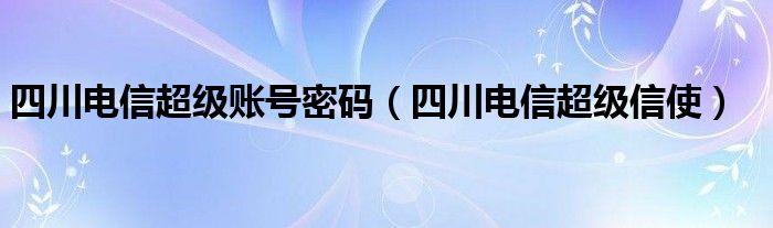 四川电信超级账号密码,四川电信超级信使这个很多人还不知道,小飞来为大家解答以上的问题。现在让我们一起来看看吧!