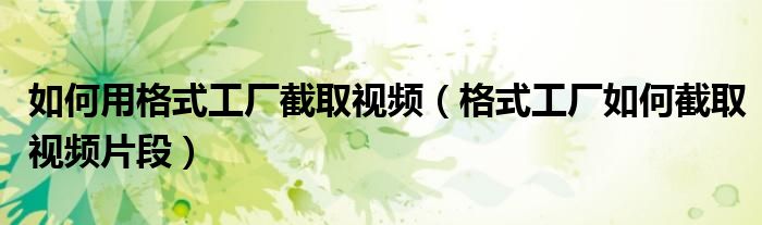 关于如何用格式工厂截取视频,格式工厂如何截取视频片段这个很多人还不知道,今天菲菲来为大家解答以上的问题,现在让我们一起来看看吧!