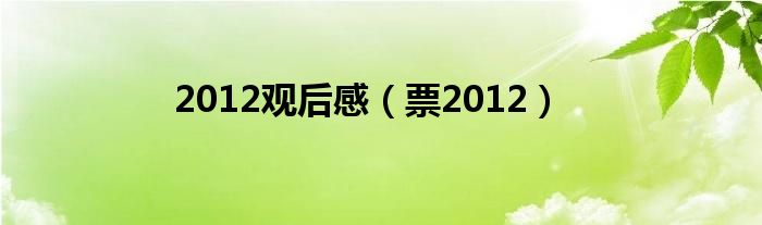 大家好,慧慧来为大家解答以上问题,2012观后感,票2012很多人还不知道,现在让我们一起来看看吧!
