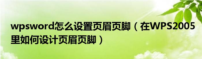 大家好,今天小悦来为大家解答以上问题。wpsword怎么设置页眉页脚,在WPS2005里如何设计页眉页脚很多人还不知道,现在让我们一起来看看吧!