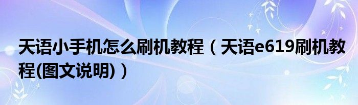 大家好,今天小悦来为大家解答以上问题。天语小手机怎么刷机教程,天语e619刷机教程(图文说明)很多人还不知道,现在让我们一起来看看吧!