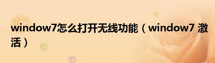 最佳答案大家好,慧慧来为大家解答以上问题,window7怎么打开无线功能,window7 激活很多人还不知道,现在让我们一起来看看吧!简介:Windows操作系统是我们日常生活中最常见的计算机操作系统,使用最多的版本是Windows7操作系统。我们刚装Windows7操作系统的时候,Windows7操作系统一开始是没有激活的。我...