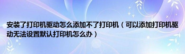 大家好,今天小悦来为大家解答以上问题。安装了打印机驱动怎么添加不了打印机,可以添加打印机驱动无法设置默认打印机怎么办很多人还不知道,现在让我们一起来看看吧!