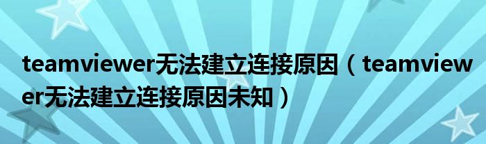 teamviewer无法建立连接原因(teamviewer无法建立连接原因未知)