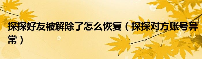 大家好,跳跳为你解答以上问题。探探好友被解除了怎么恢复,探探对方账号异常这个问题很多人还不知道,现在让我们一起来看看吧!