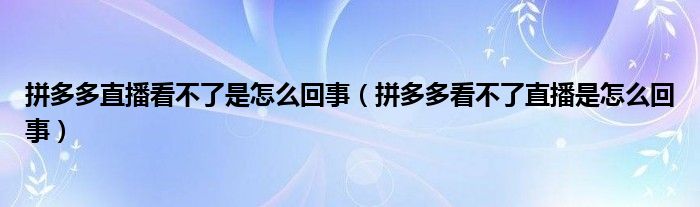 拼多多直播看不了是怎么回事(拼多多看不了直播是怎么回事)