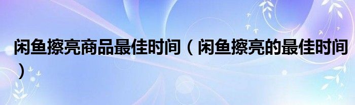 大家好,跳跳为你解答以上问题。闲鱼擦亮商品最佳时间,闲鱼擦亮的最佳时间这个问题很多人还不知道,现在让我们一起来看看吧!
