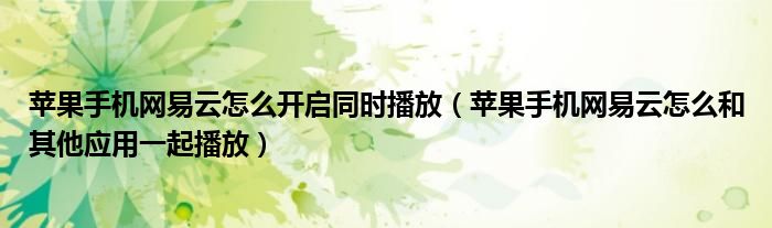 大家好,跳跳为你解答以上问题。苹果手机网易云怎么开启同时播放,苹果手机网易云怎么和其他应用一起播放这个问题很多人还不知道,现在让我们一起来看看吧!