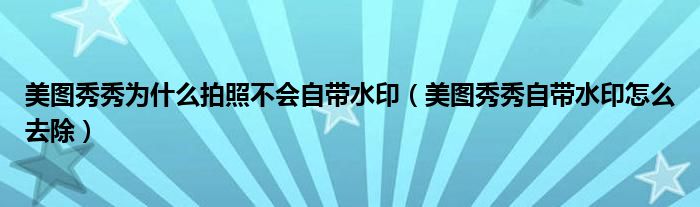 大家好,跳跳为你解答以上问题。美图秀秀为什么拍照不会自带水印,美图秀秀自带水印怎么去除这个问题很多人还不知道,现在让我们一起来看看吧!