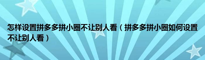 大家好,跳跳为你解答以上问题。怎样设置拼多多拼小圈不让别人看,拼多多拼小圈如何设置不让别人看这个问题很多人还不知道,现在让我们一起来看看吧!