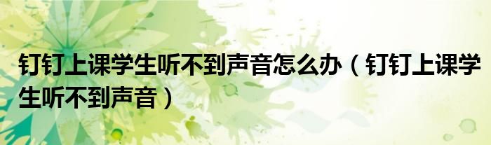大家好,跳跳为你解答以上问题。钉钉上课学生听不到声音怎么办,钉钉上课学生听不到声音这个问题很多人还不知道,现在让我们一起来看看吧!