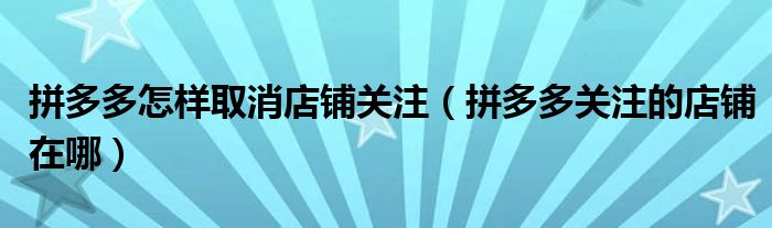 大家好,跳跳为你解答以上问题。拼多多怎样取消店铺关注,拼多多关注的店铺在哪这个问题很多人还不知道,现在让我们一起来看看吧!