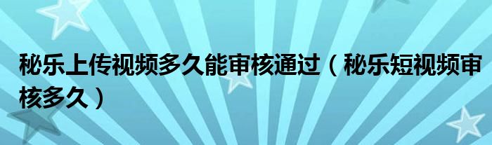 解答:1、秘乐短视频审核多久取决于视频的长度,以及视频的内容。一般十分钟左右就能批下来。