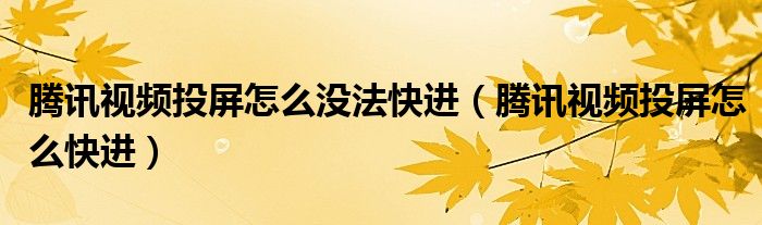 腾讯视频投屏怎么没法快进(腾讯视频投屏怎么快进)