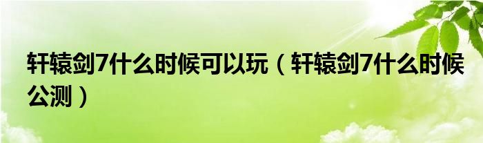 轩辕剑7什么时候可以玩(轩辕剑7什么时候公测)