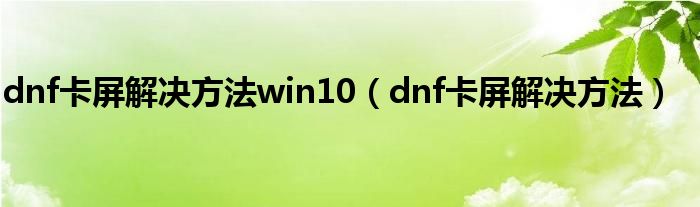 dnf卡屏解决方法win10(dnf卡屏解决方法)
