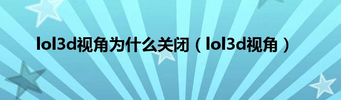大家好,慧慧来为大家解答以上问题,lol3d视角为什么关闭,lol3d视角很多人还不知道,现在让我们一起来看看吧!