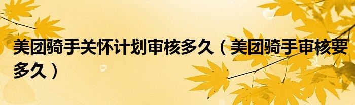 大家好,跳跳为你解答以上问题。美团骑手关怀计划审核多久,美团骑手审核要多久这个问题很多人还不知道,现在让我们一起来看看吧!