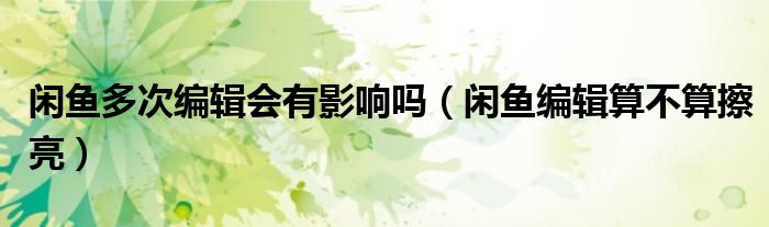 大家好,跳跳为你解答以上问题。闲鱼多次编辑会有影响吗,闲鱼编辑算不算擦亮这个问题很多人还不知道,现在让我们一起来看看吧!