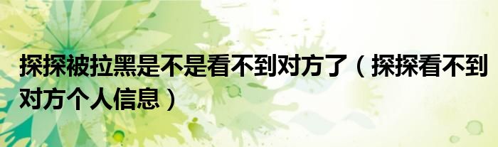 大家好,跳跳为你解答以上问题。探探被拉黑是不是看不到对方了,探探看不到对方个人信息这个问题很多人还不知道,现在让我们一起来看看吧!