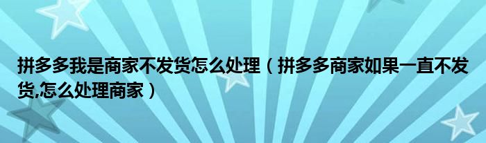 大家好,跳跳为你解答以上问题。拼多多我是商家不发货怎么处理,拼多多商家如果一直不发货,怎么处理商家这个问题很多人还不知道,现在让我们一起来看看吧!