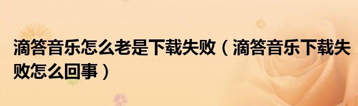 大家好,跳跳为你解答以上问题。滴答音乐怎么老是下载失败,滴答音乐下载失败怎么回事这个问题很多人还不知道,现在让我们一起来看看吧!