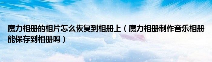 大家好,跳跳为你解答以上问题。魔力相册的相片怎么恢复到相册上,魔力相册制作音乐相册能保存到相册吗这个问题很多人还不知道,现在让我们一起来看看吧!