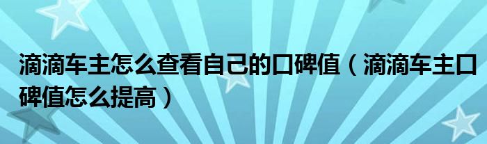 大家好,跳跳为你解答以上问题。滴滴车主怎么查看自己的口碑值,滴滴车主口碑值怎么提高这个问题很多人还不知道,现在让我们一起来看看吧!