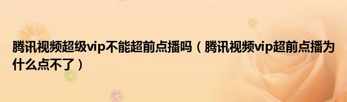 腾讯视频超级vip不能超前点播吗(腾讯视频vip超前点播为什么点不了)