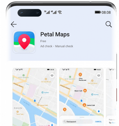 AppGallery应用商店中已经提供了花瓣地图服务的测试版本。这是报告的门户GizChina。地图可在全球140多个国家/地区使用。