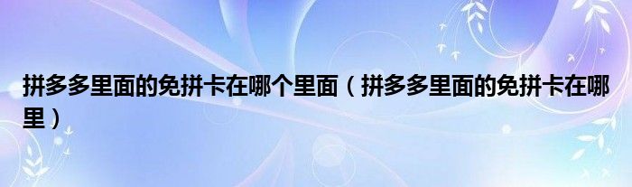 大家好,跳跳为你解答以上问题。拼多多里面的免拼卡在哪个里面,拼多多里面的免拼卡在哪里这个问题很多人还不知道,现在让我们一起来看看吧!