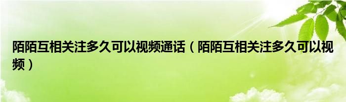 陌陌互相关注多久可以视频通话(陌陌互相关注多久可以视频)