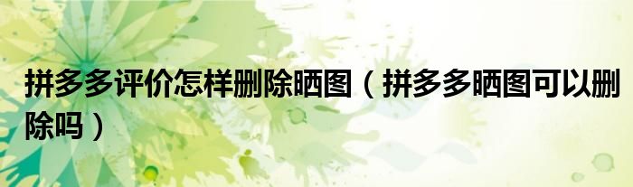 大家好,跳跳为你解答以上问题。拼多多评价怎样删除晒图,拼多多晒图可以删除吗这个问题很多人还不知道,现在让我们一起来看看吧!